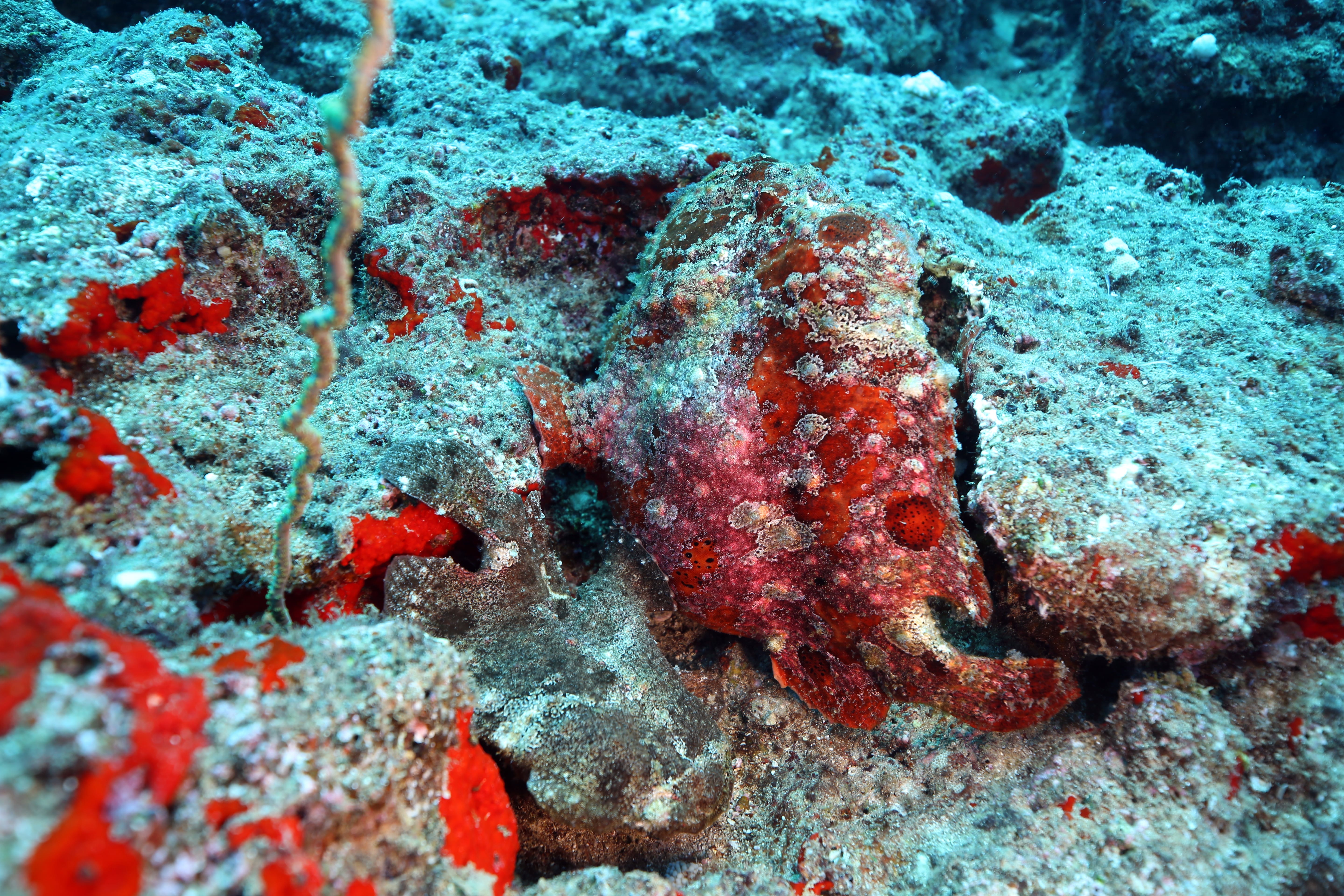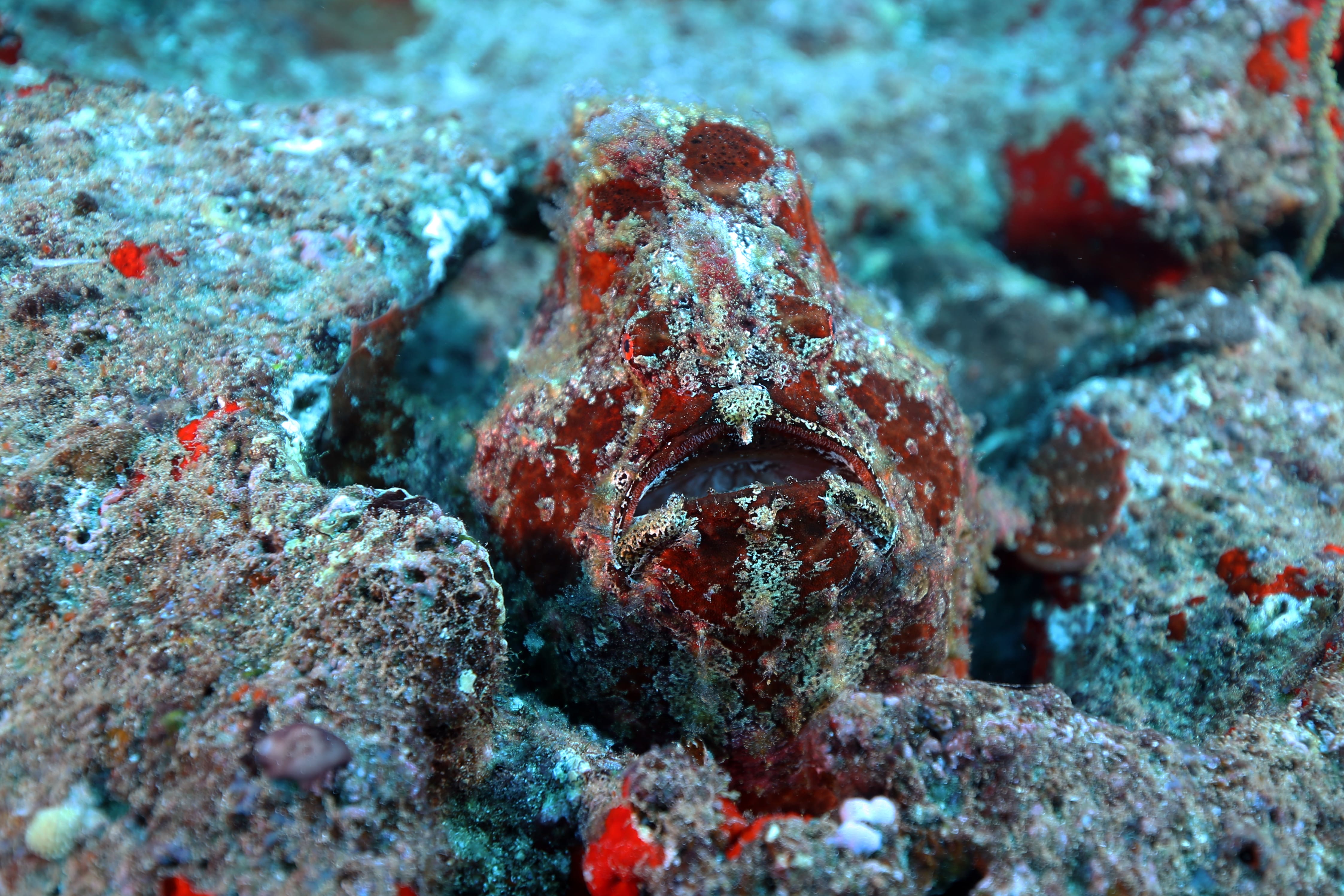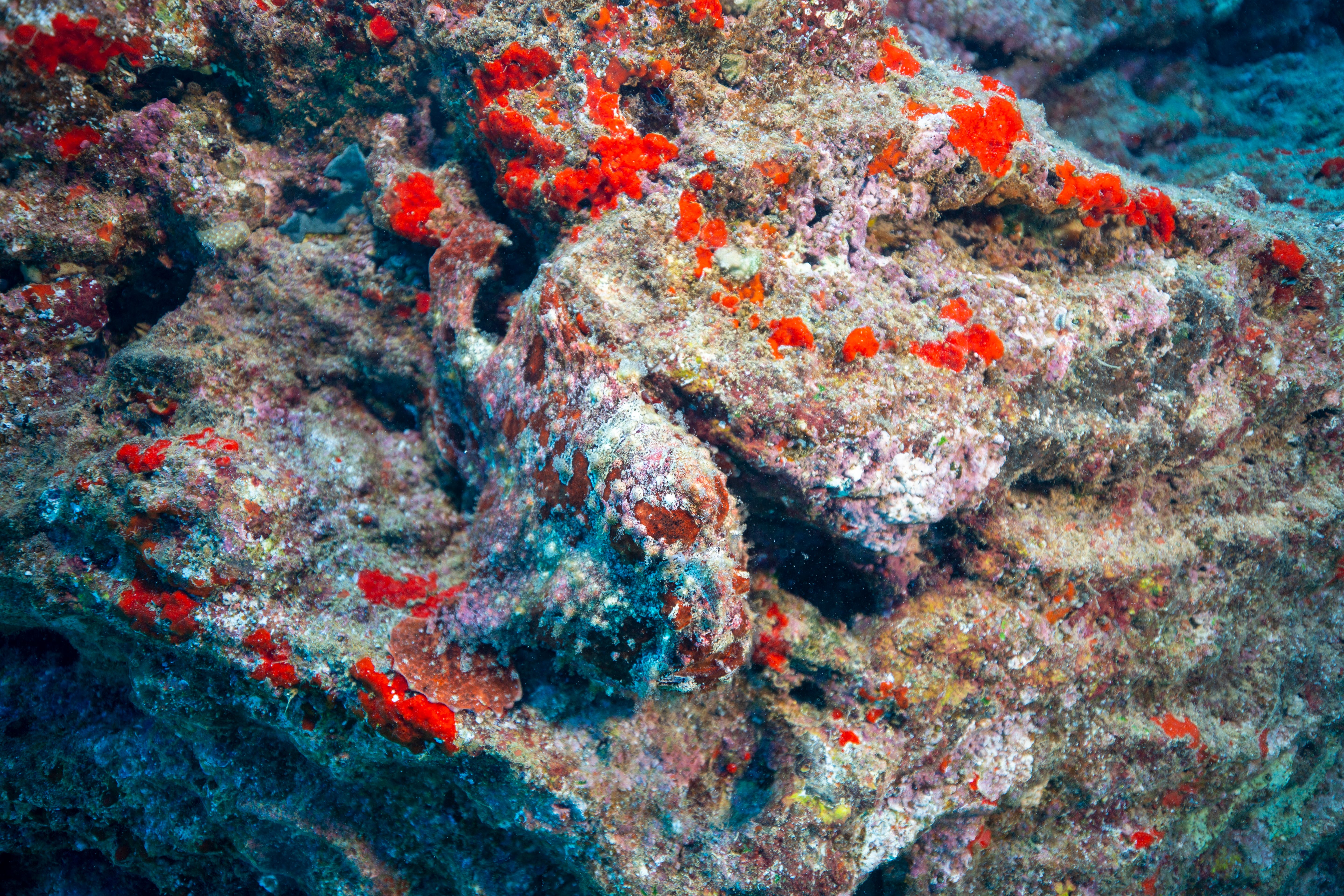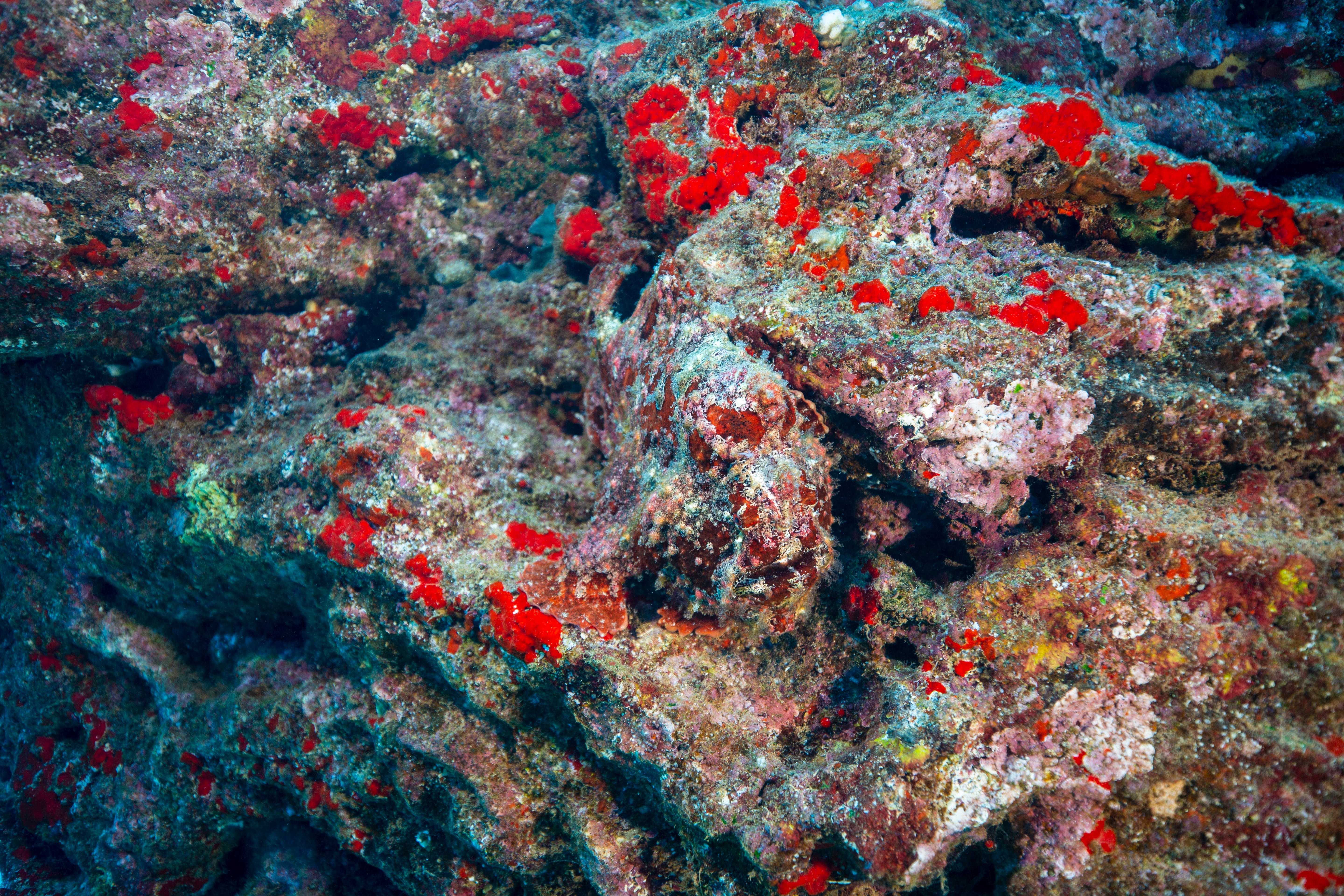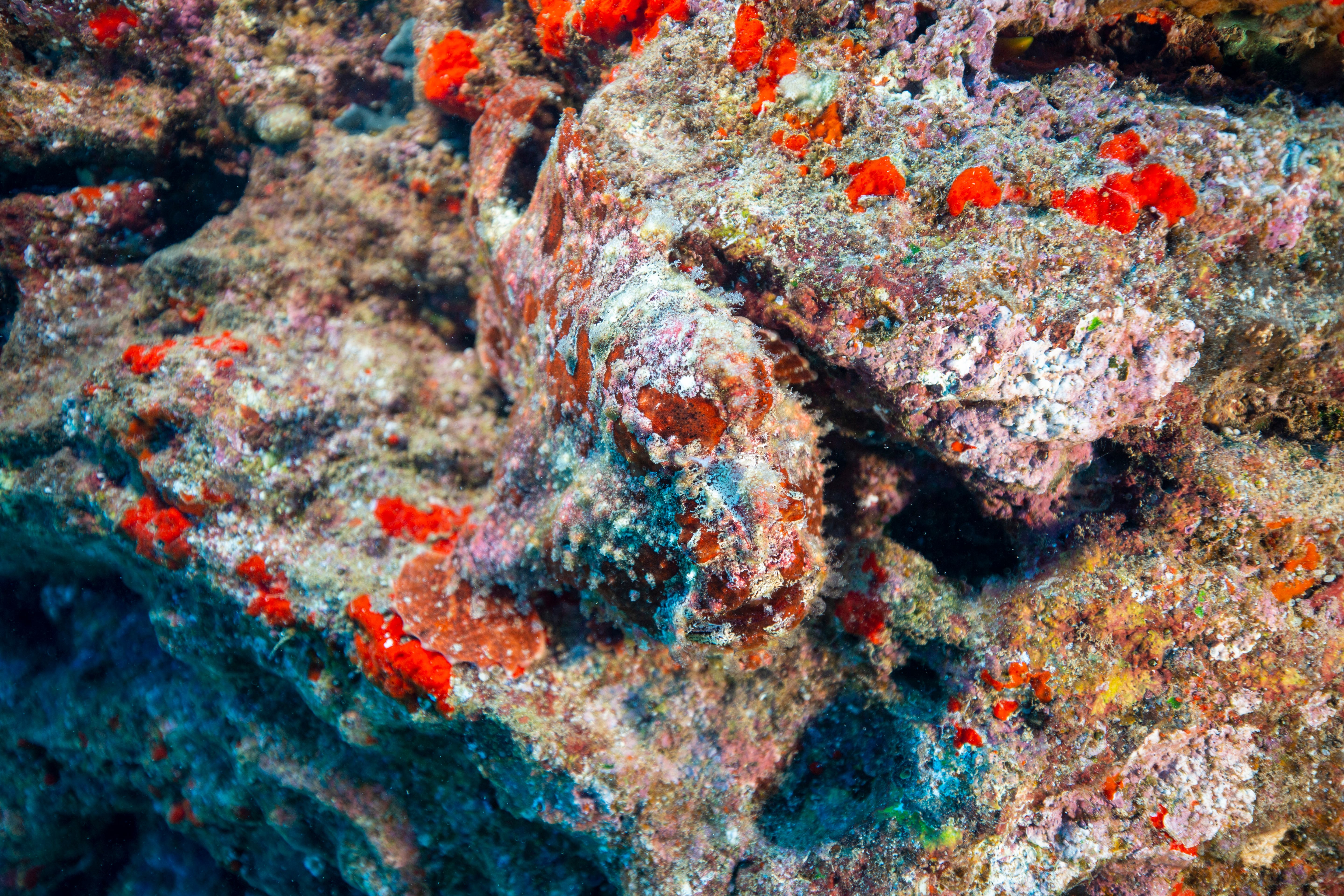 Took a short ride out to a typical Kauai, HI diving location named Turtle Bluffs. Two Frogfish nestled up against one another. There’s some debate as to whether these are Commerson or Painted frogfish but I really think they are Commersons. Also snapped some quick pics of a few other local residents. Enjoy!