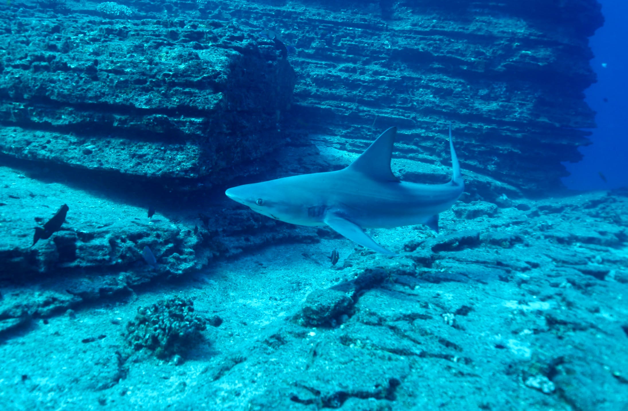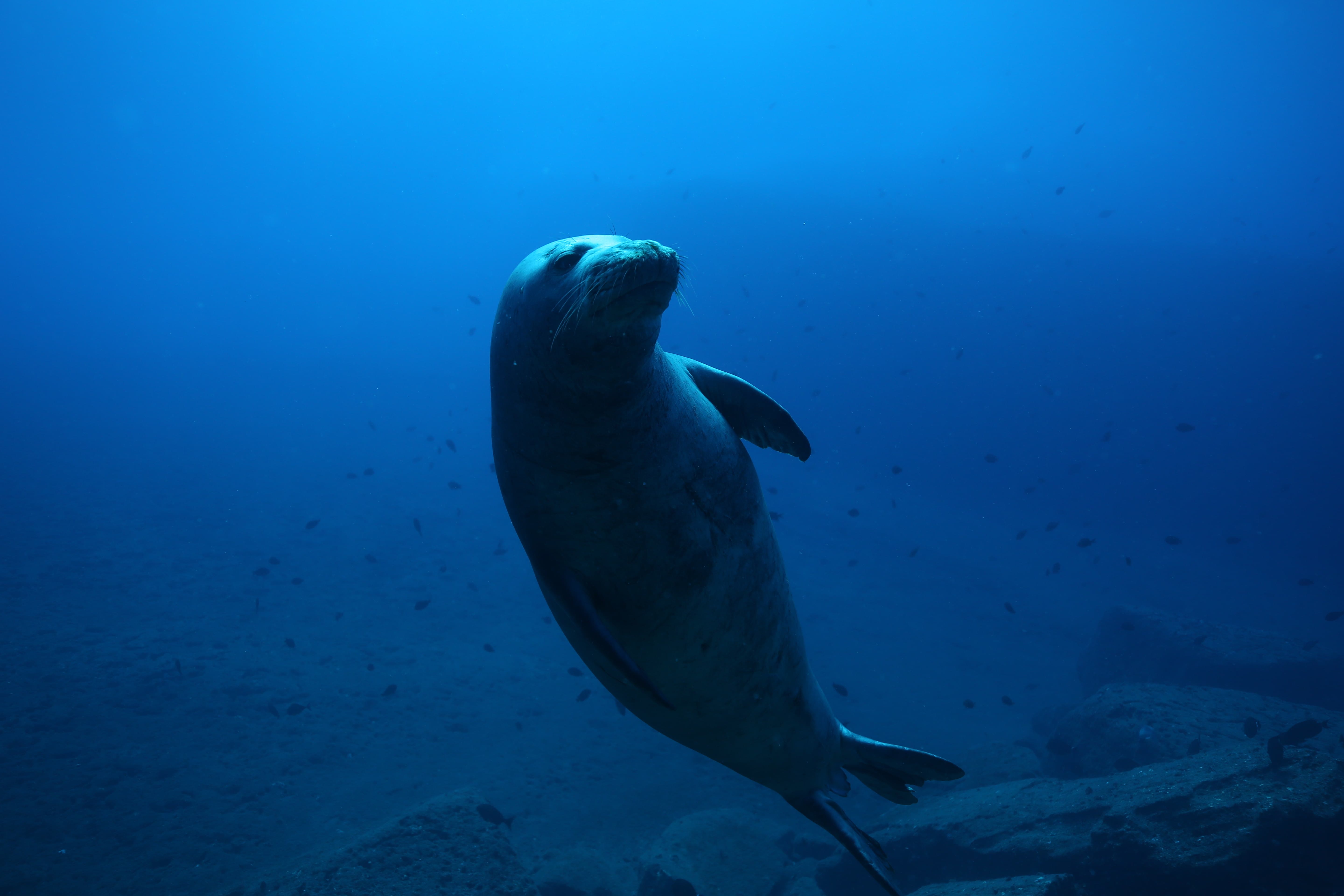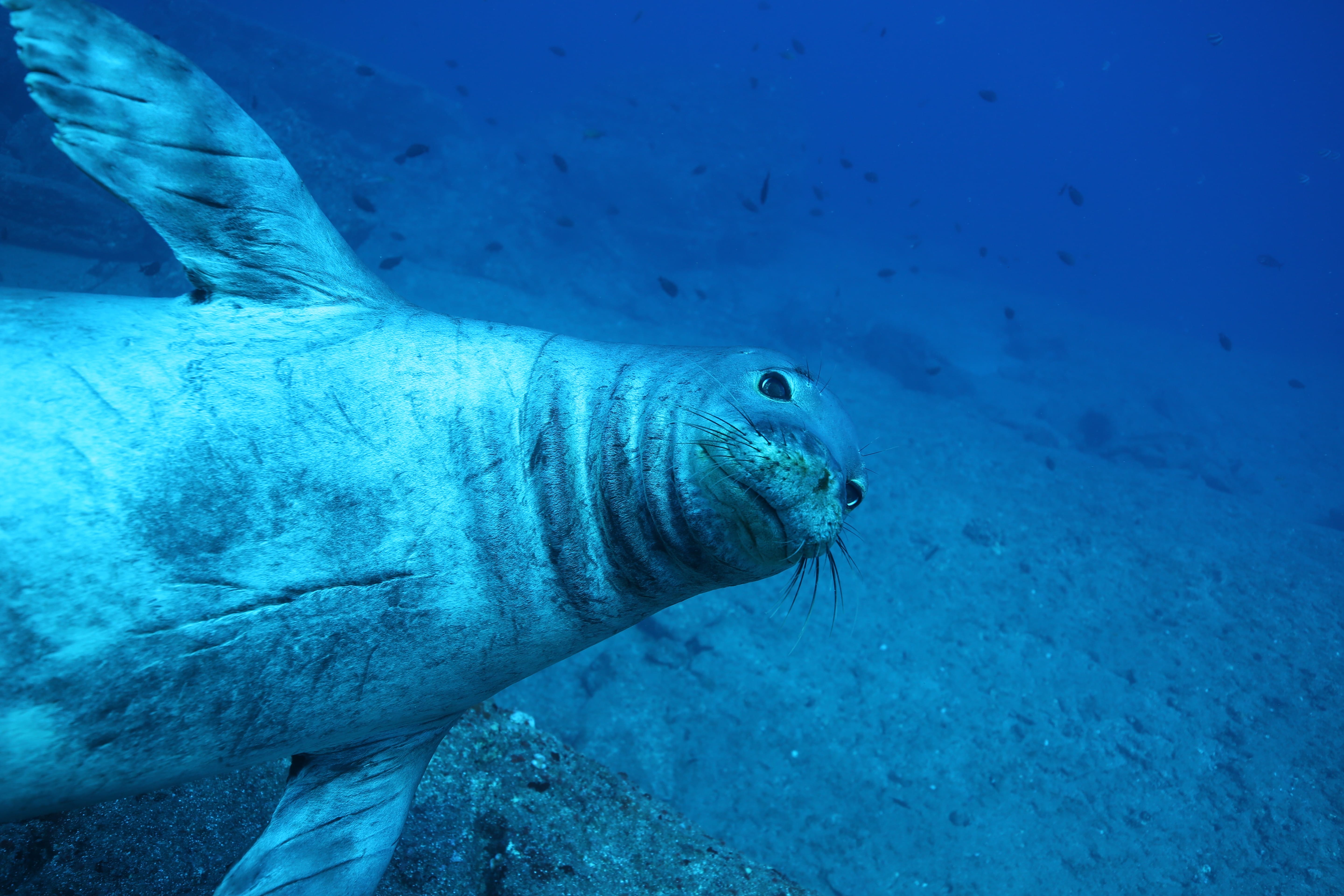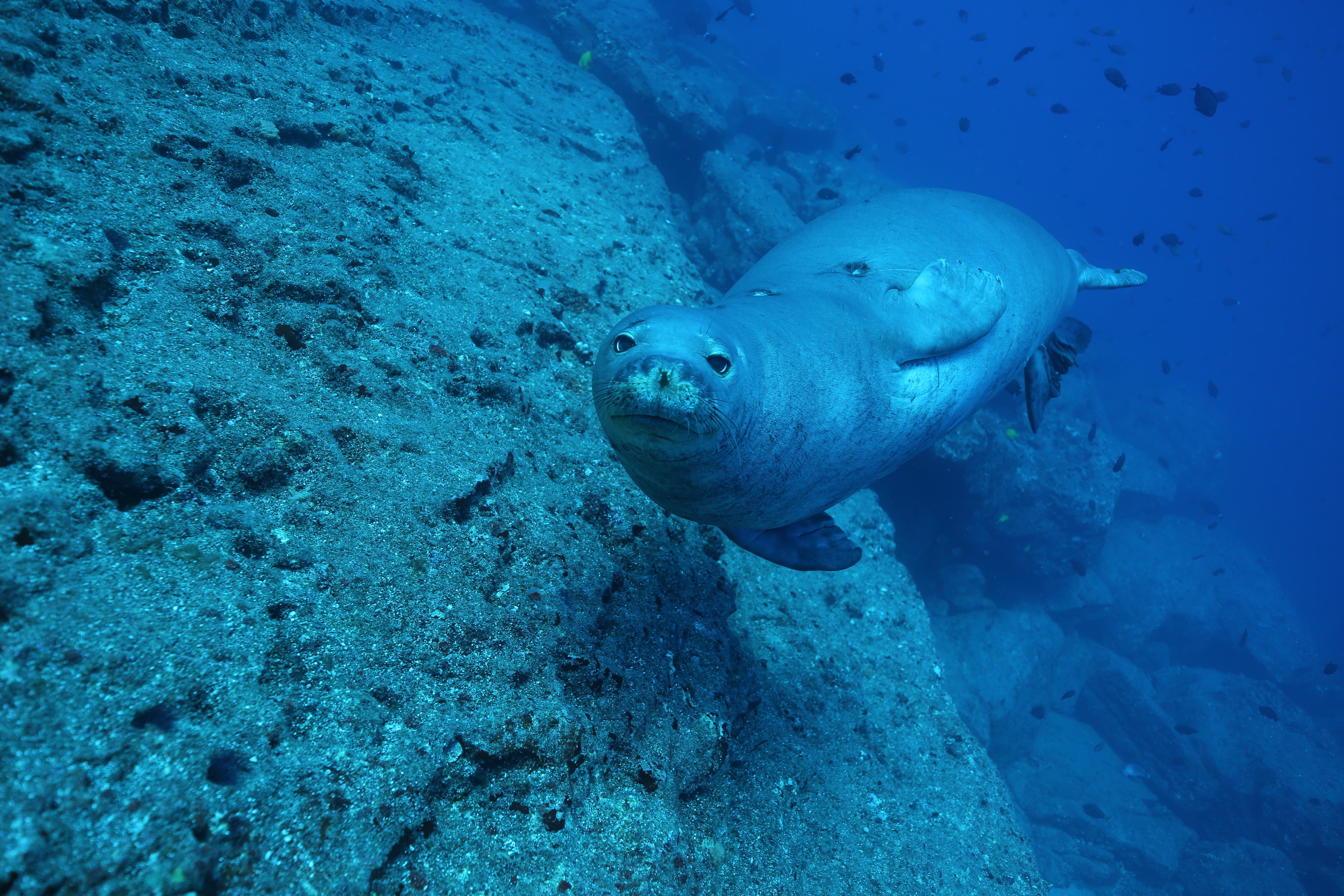 Amazing weather in the northwest Hawaiian islands made for a great trip out to Lehua. The water was welcoming both above and below the surface and, as usual, there was lots to see in this remote corner of the ocean. The sharks were out and plentiful today as were lots of other fish (and one non-cooperative Japanese Knifejaw). And while many of the monk seals were out and about today, one chose to swing by and pose for some pictures today.